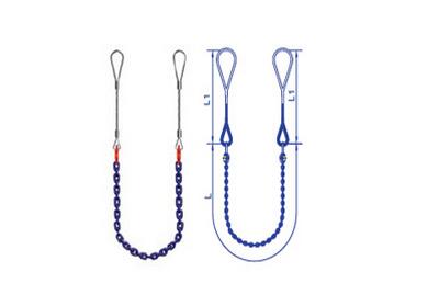 安全保證:4倍安全系數(shù)。壓制鋼絲繩索具長度L1=50倍的鋼絲繩直徑。插編鋼絲繩索具長度L1
